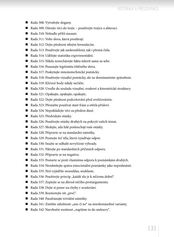 Titul je určen pro ty, pro které je vysvětlování a přesvědčování denním chlebem – obchodníky, ale také manažery, učitele, politiky ad. Nabídne jim ucelený kurz, jehož úkolem je vylepšit vystupování, mluvu, ale především argumentaci. Projde nejčastější námitky a poradí, jak se na ně co nejlépe připravit a jak je v praxi zvládnout.