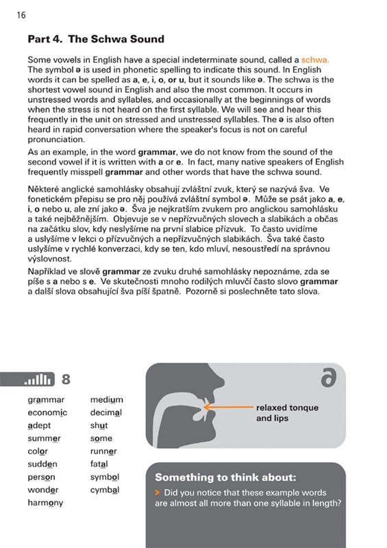 Přiložené AUDIO CD obsahuje příklady namluvené rodilými mluvčími, a to jak anglickými, tak americkými! Účelem je, abyste si zvykli na jejich odlišné akcenty.