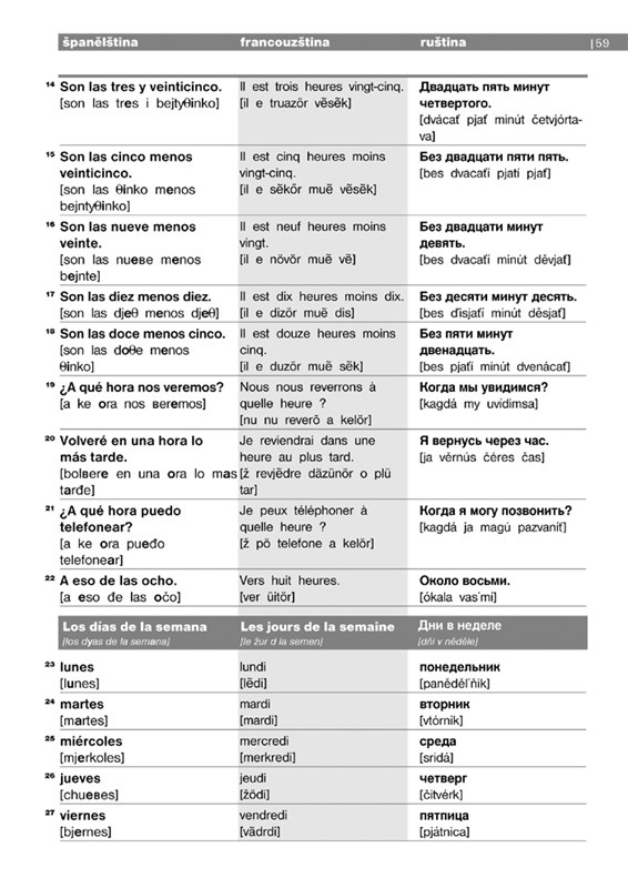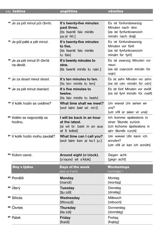 Pomůže vám naše Cestovní konverzace v pěti jazycích – angličtině, francouzštině, němčině, ruštině a španělštině. Obsahuje jak základní informace o gramatice a výslovnosti každého z jazyků, tak slovíčka a fráze týkající se: