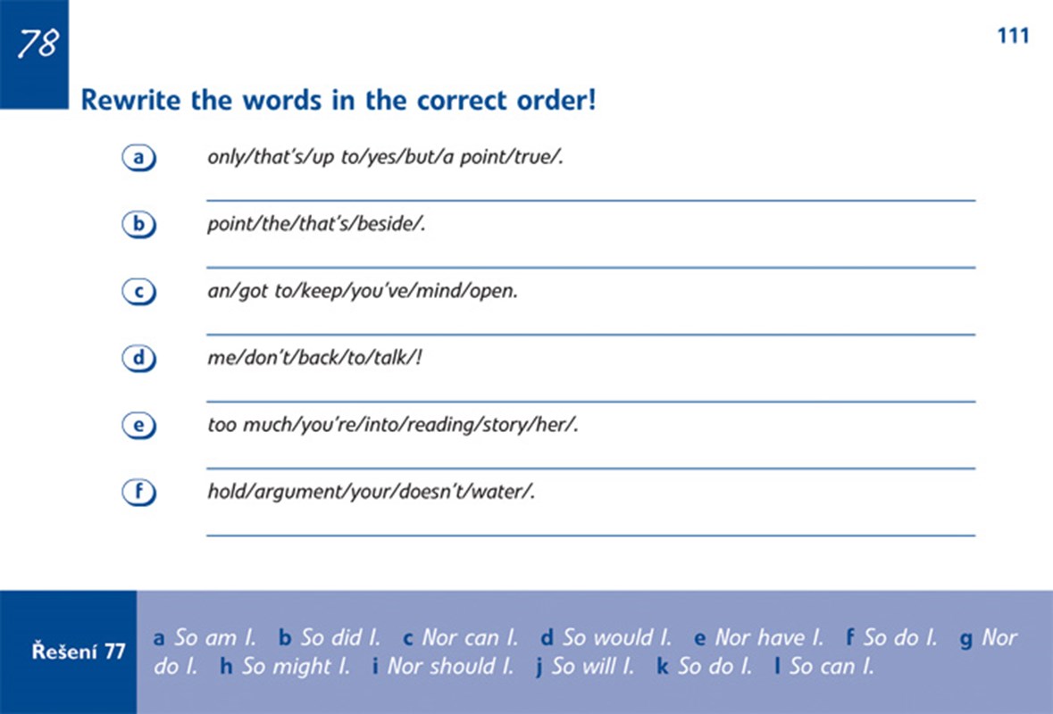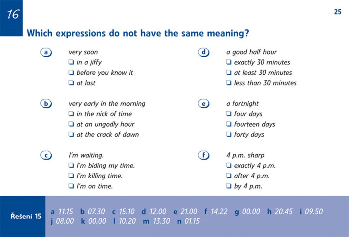 Knížečka 100 pětiminutových cvičení se vám lehce vejde do kapsy. Ať cestujete ve vlaku, sedíte v čekárně nebo v parku na lavičce, můžete ji otevřít a během pěti minut vyřešit jedno ze cvičení. Tím si procvičíte jednu z jazykových oblastí. Zároveň získáte nové znalosti a utužíte nabyté dovednosti.