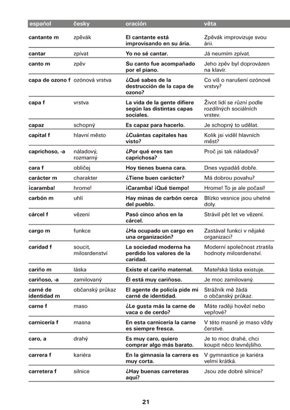 Na 6 AUDIO CD najdete všech 2000 slovíček nahraných několika rodilými mluvčími. Více mluvčích jsme využili proto, aby si posluchač zvykl na různou výslovnost typickou pro různé španělské oblasti. Nahrávky zároveň poslouží k procvičování mluveného slova a pomohou zafixovat si výraz v mluvené podobě tak, abyste mu dokázali okamžitě porozumět.