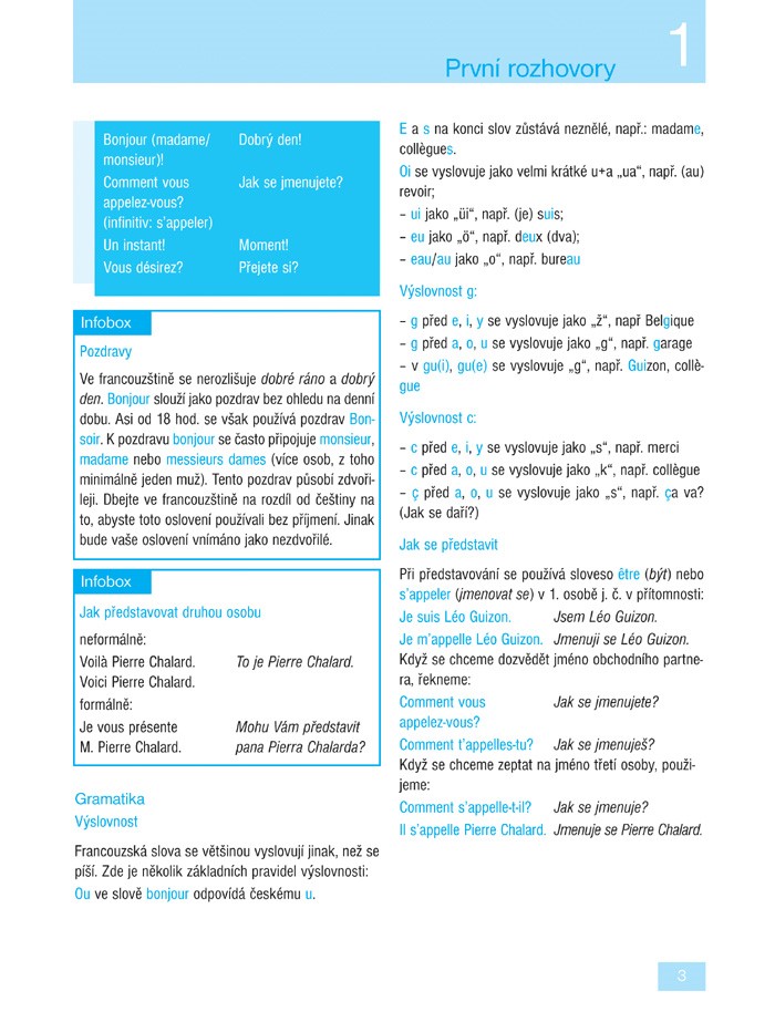 Ve 24 lekcích se naučíte základní gramatiku a osvojíte si slovní zásobu potřebnou v běžné komunikaci. Díky rozmanitým textům přibližujícím obvyklé situace (na nádraží, v hotelu, na nákupu, u lékaře, v bance, s přáteli) budete vědět, jak v dané chvíli reagovat. V infoboxech pak budete průběžně seznamováni s jazykovými zvláštnostmi, místními reáliemi a způsobem života ve Francii. Samozřejmostí jsou také rozmanitá cvičení, díky kterým si lehce zopakujete to, co jste se již naučili.