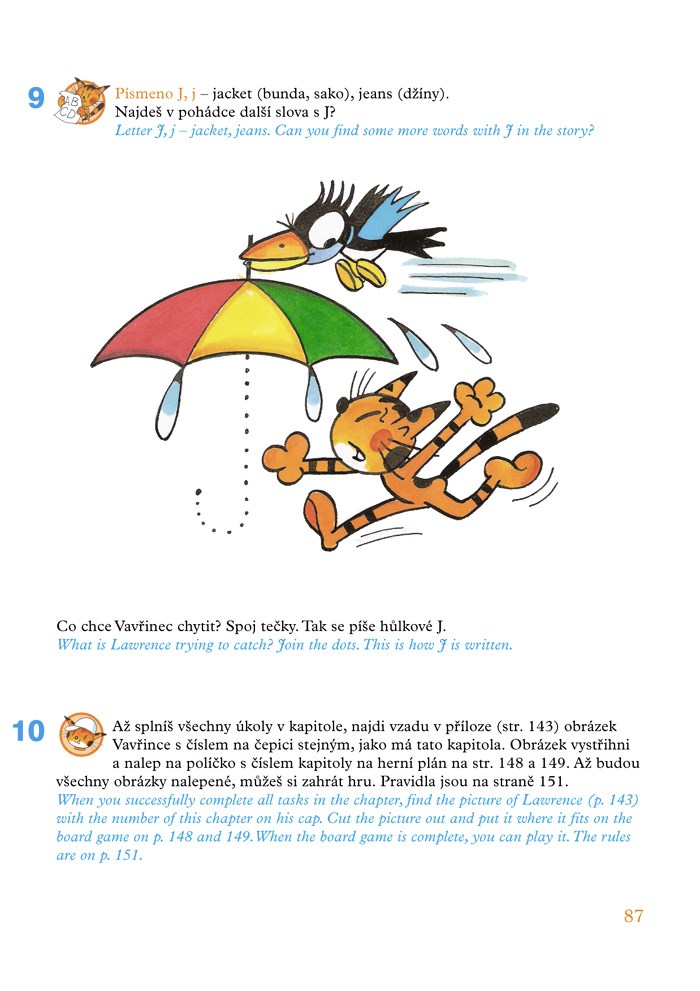 Součástí knihy je audio CD, kde najdete namluvená poslechová cvičení, písničky i s verzí karaaoke a pohádky, které se objevily v knize. Jako doplněk k oběma učebnicím najdete ve druhém dílu interaktivní CD, kde jsou další cvičení a pohádky s jednoduchými animacemi. Samozřejmostí jsou také zábavné úkoly, pomocí kterých se děti dozví více i o životě kolem nás a naučí se pracovat s počítačem.