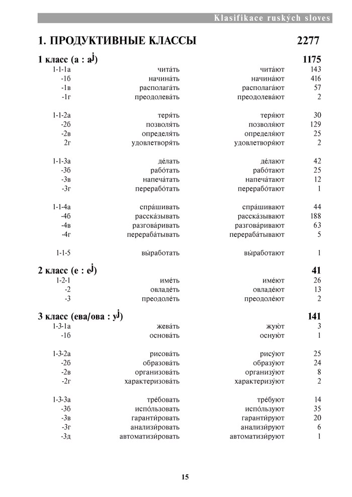 - klasifikaci ruských sloves do tříd a skupin