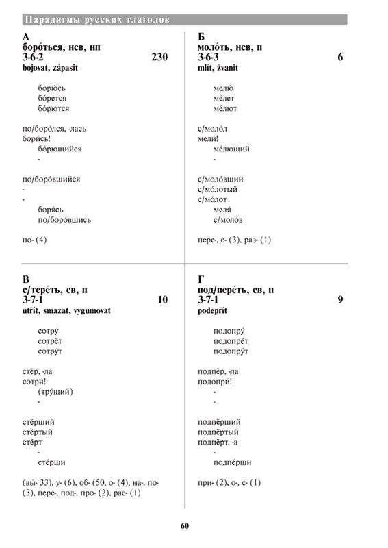 Publikace usnadní práci všem pedagogům, studentům a překladatelům, poslouží jim k osvojení nebo ověření tvarů a vazeb ruských sloves.