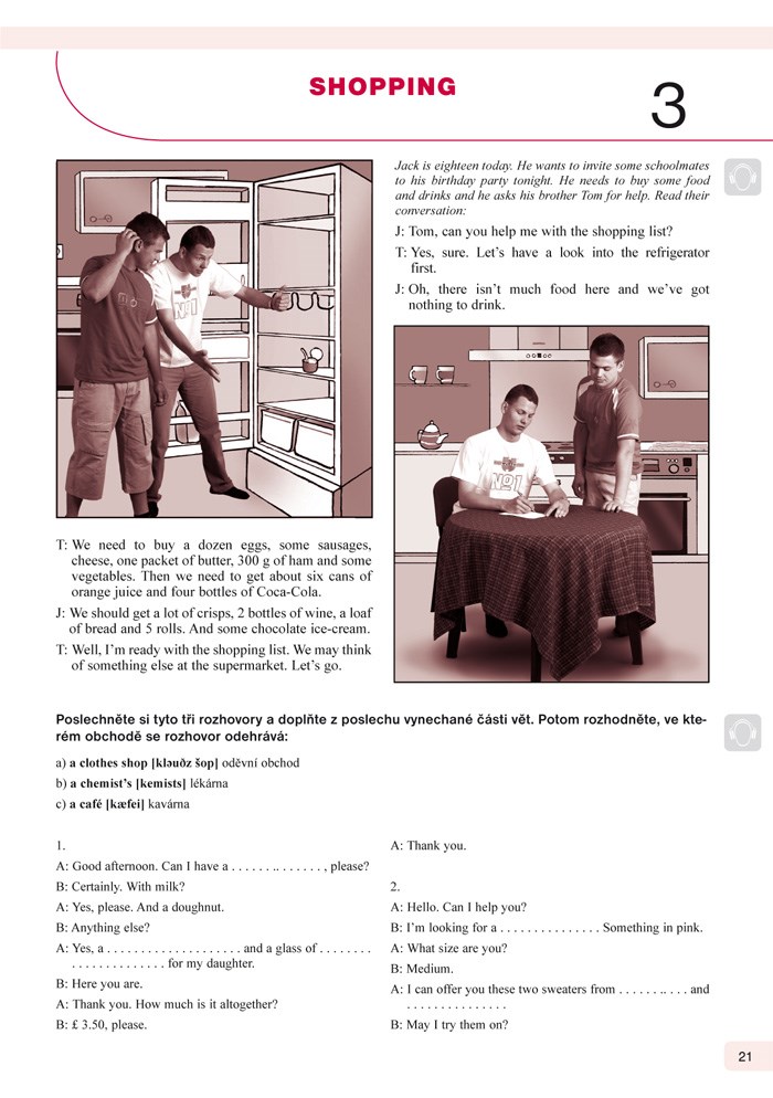 - texty a rozhovory zaměřené na určité téma včetně slovní zásoby