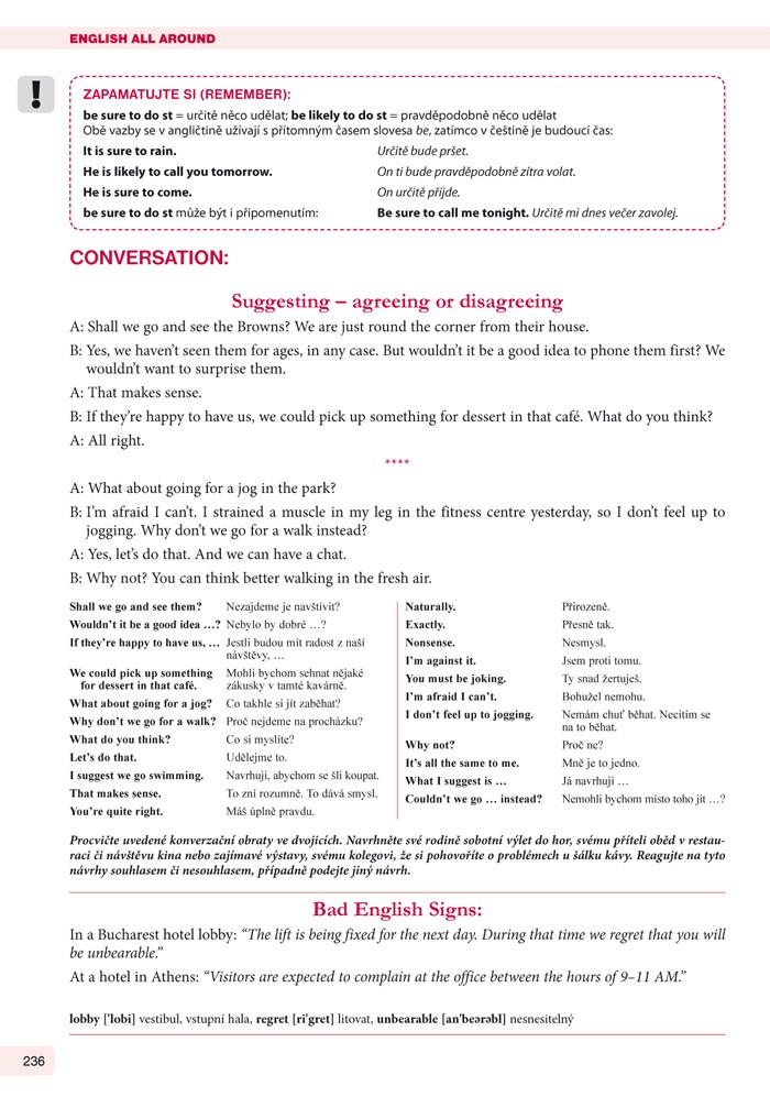 Po pěti lekcích je vždy zařazeno opakování (Revision), kde si mohou samouci ověřit stupeň získaných vědomostí. Na konci učebnice je přehled nepravidelných sloves, seznam nejpoužívanějších frázových sloves, přehled slovesných tvarů a souhrnný česko-anglický a anglicko-český slovník.