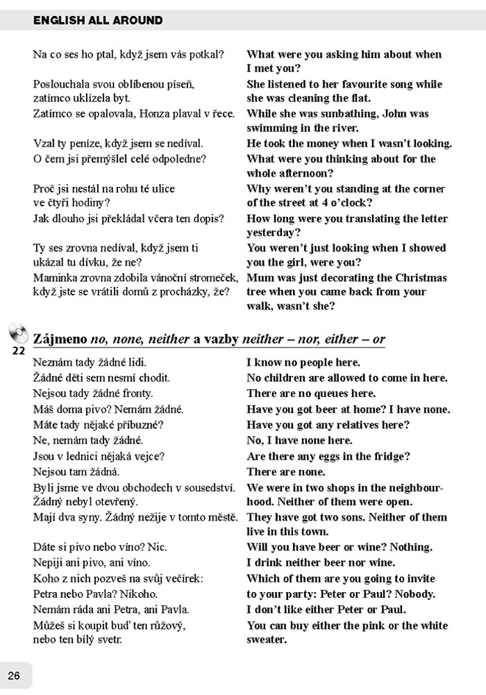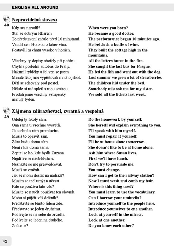 Tento soubor cvičebních vět je užitečnou doplňující částí výukové učebnice English All Around Kurz angličtiny pro samouky. Může být ale také nezávisle na této učebnici praktickou pomůckou pro všechny samouky, kteří potřebují získat více sebedůvěry a pohotovosti v mluvení a zlepšit svou výslovnost.