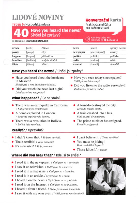 Každý všední den v Lidových novinách vycházela lekce angličtiny. Každou sobotu cvičení.
