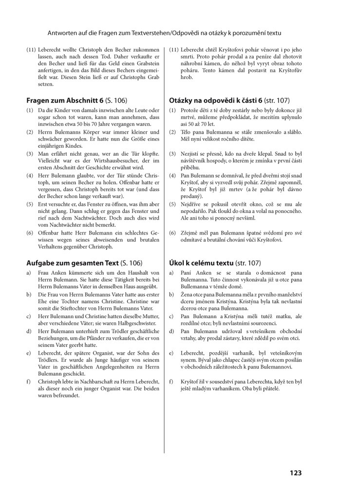 - kontrolní otázky, kterými si ověříte porozumění německému textu,