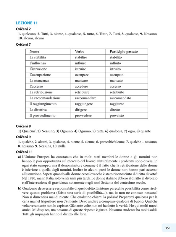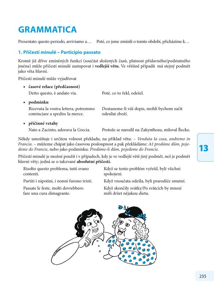 - úvodní dialogy nebo souvislý text zaměřený na italské reálie