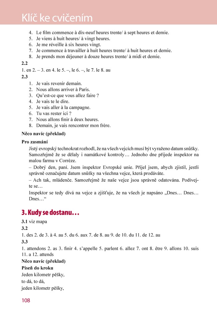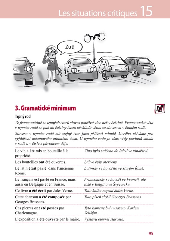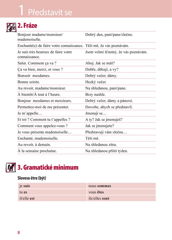 V každé z 15 lekcí knihy nejprve najdete rozsáhlou slovní zásobu k tématu. Velkou pomůckou je přepis výslovnosti u všech slovíček, který pomůže i úplnému začátečníkovi bez problémů zvládnout francouzskou výslovnost. V lekci také najdete základní informace o francouzské gramatice podané v dostupné a přehledné formě. Pozornost je věnována zejména těm gramatickým jevům, které mohou dělat potíže českému mluvčímu. Za gramatikou následují cvičení a na závěr vás čekají vtipy, hádanky a další autentické materiály z francouzského prostředí.