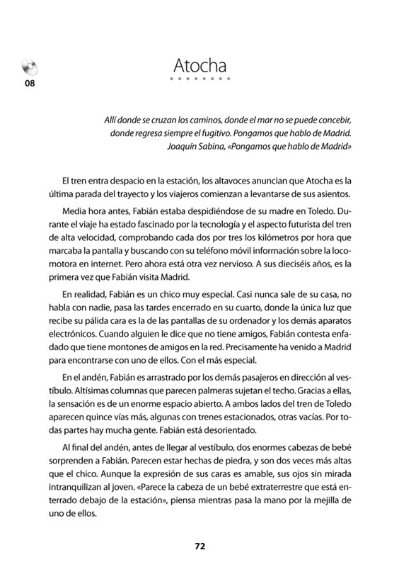 Cílem publikace však není jen poskytnutí studijních materiálů k procvičování španělského jazyka. Autor, rodilý Madriďan, chce seznámit čtenáře s některými rysy kulturního života a každodenní reality svého rodného města. Pod svým jedinečným nebem ukrývá toto fascinující město nekonečnou řadu příběhů a zákoutí, kde se kosmopolitní duch velkoměsta mísí s kastilskou tradicí. Pozorný čtenář se tak na dálku seznámí s místy, kde se příběhy odehrávají a která jsou každému Madriďanovi důvěrně známá. V publikaci najdete: