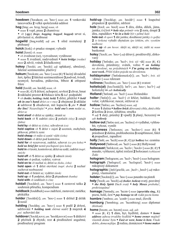 V anglicko-české části je uveden přepis výslovnosti, v případě rozlišné britské a americké výslovnosti obě varianty. Heslář provází detailní gramatická charakteristika, ať se týká slovních druhů, skloňování, časování, čísel, slovesných tvarů, počitatelnosti ad. V příloze je uveden přehled nepravidelných sloves.