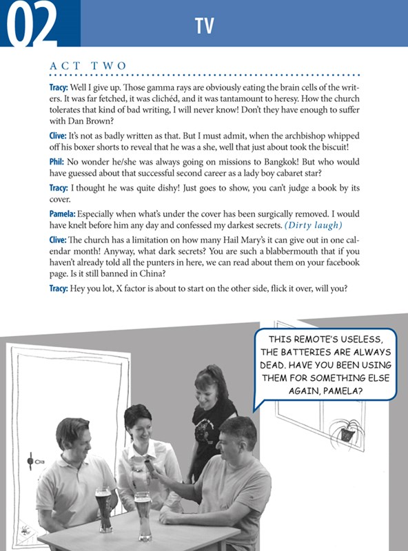 Publikace vedená jako foto-komiks nabízí trochu jinou angličtinu, než jakou užívají přes den uhlazení gentlemani. Je však ze života! Projde s vámi témata nejčastěji nad pivem probíraná: sex, fotbal, přátele, TV, počítače, auta, potomky ad. Diskutuje je čtveřice anglických samorostů. Za každým článkem následuje výklad frází a kontrolní otázky. Zvukové CD obsahuje všechny kapitoly brilantně zahrané. WOV!