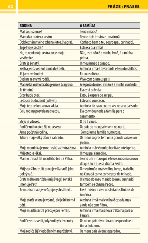 Každý tematický celek je doplněn typickými frázemi. Na konci knihy se nachází souhrnný slovníček.
