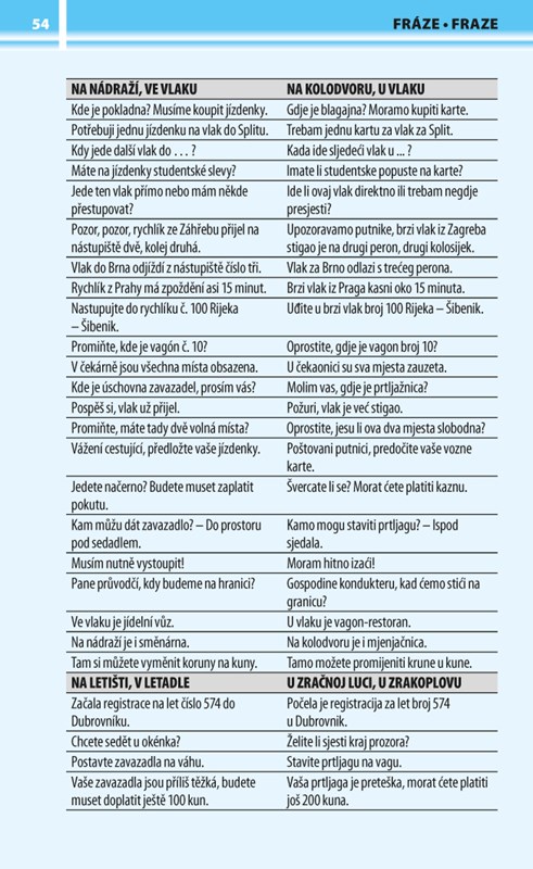Každý tematický celek je doplněn typickými frázemi. Na konci knihy se nachází souhrnný slovníček.