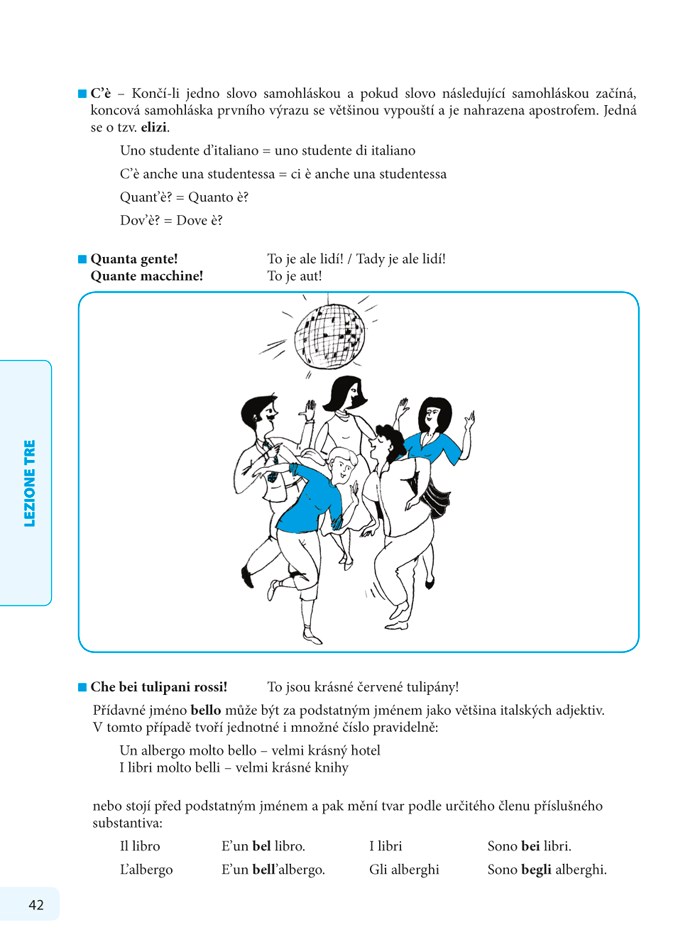 Učebnice současné italštiny, 1. díl je určena všem zájemcům o získání základů italského jazyka, po jejím zvládnutí dosáhnete úrovně B1 Evropského referenčního rámce. Cílem učebnice je naučit vás číst a porozumět italskému textu, komunikovat s rodilými mluvčími písemnou i ústní formou, seznámit vás s některými italskými zvyklostmi. Každá lekce obsahuje: