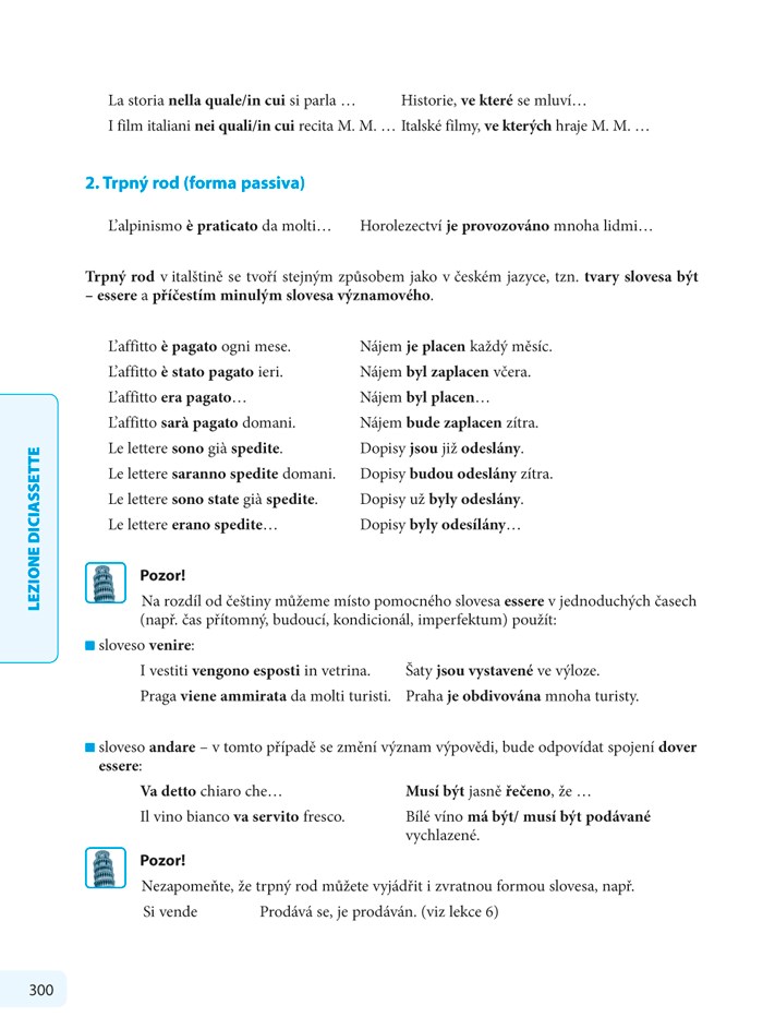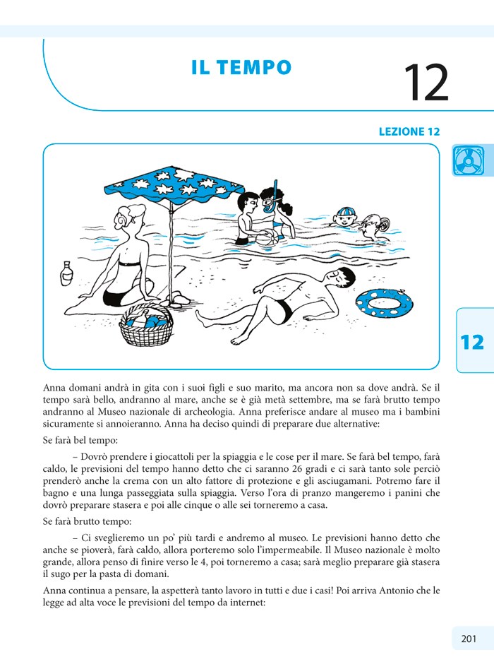 Nedílnou součástí učebnice je audionahrávka namluvená rodilými mluvčími z různých italských regionů, najdete zde řadu živých dialogů. Nahrávka napomůže utvrzení slovní zásoby, procvičení výslovnosti a schopnosti lépe porozumět mluvenému projevu.