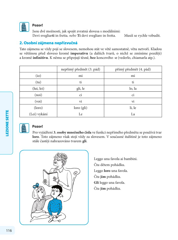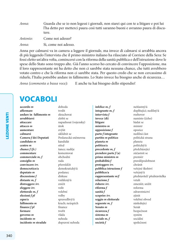 Učebnice současné italštiny, 1. díl je určena všem zájemcům o získání základů italského jazyka, po jejím zvládnutí dosáhnete úrovně B1 Evropského referenčního rámce. Cílem učebnice je naučit vás číst a porozumět italskému textu, komunikovat s rodilými mluvčími písemnou i ústní formou, seznámit vás s některými italskými zvyklostmi. Každá lekce obsahuje: