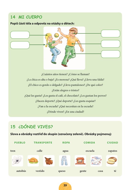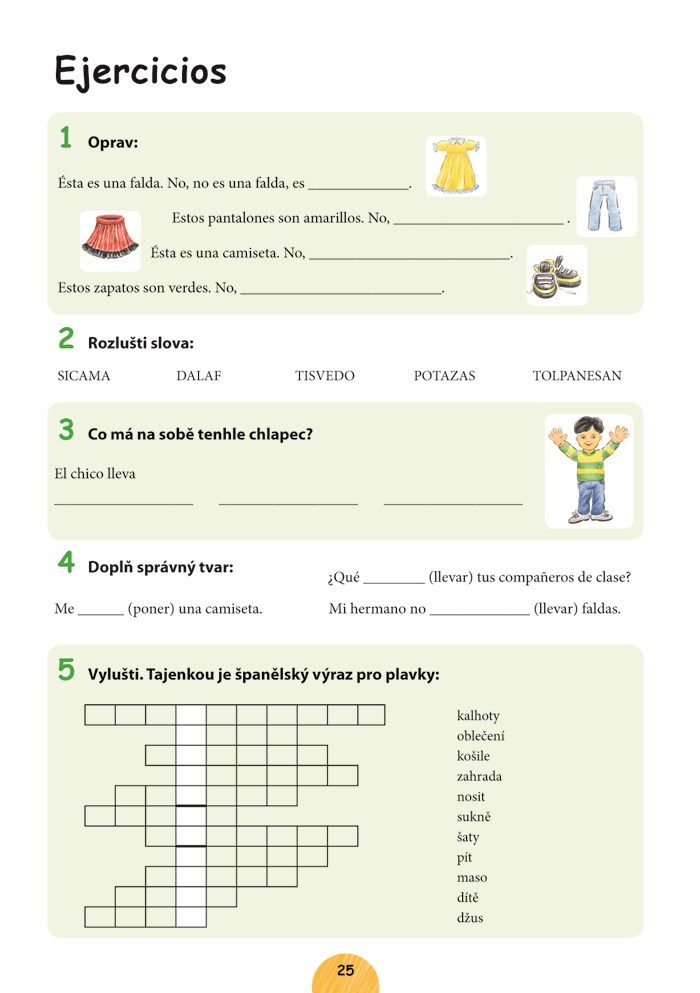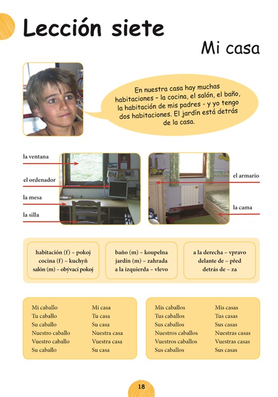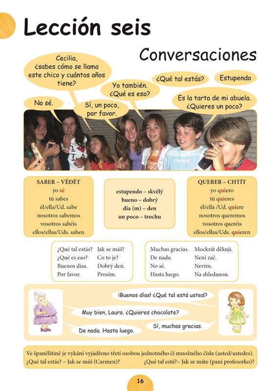 Tato učebnice je určena dětem ve věku 6 až 11 let, aby jim pomohla seznámit se hravou a nenásilnou formou se španělštinou. Učebnice je vhodná pro výuku pod vedením učitele. Umožní dětem získat základní slovní zásobu (cca 200 slov) , tvořit jednoduché věty a porozumět krátkým textům. Učebnice pokrývá pouze základní gramatické jevy - jednoduché časování v přítomném čase, tvorbu záporu, základní informaci o členech... V příloze je kvarteto sloužící k opakování slovní zásoby, v jednotlivých lekcích je několik her. V příloze je španělsko-český slovníček zahrnující všechna slova použitá v knize. Učebnice pomůže dětem snadno zvládnout základy španělského jazyka a povzbudit chuť k dalšímu studiu.