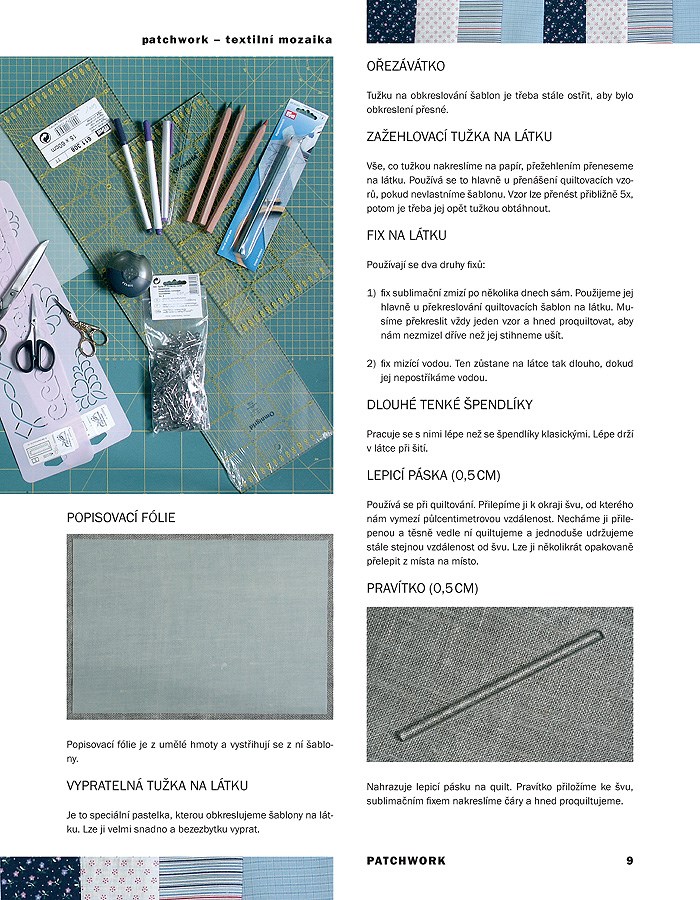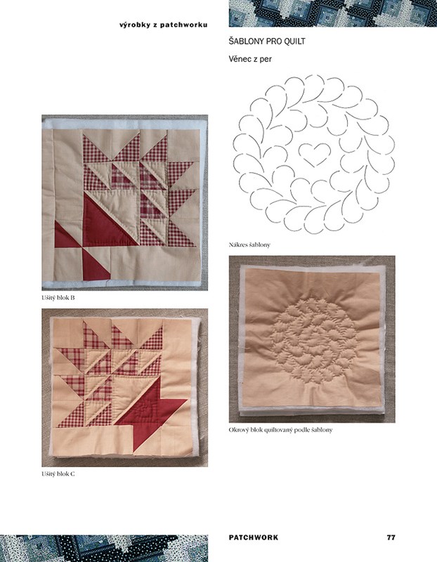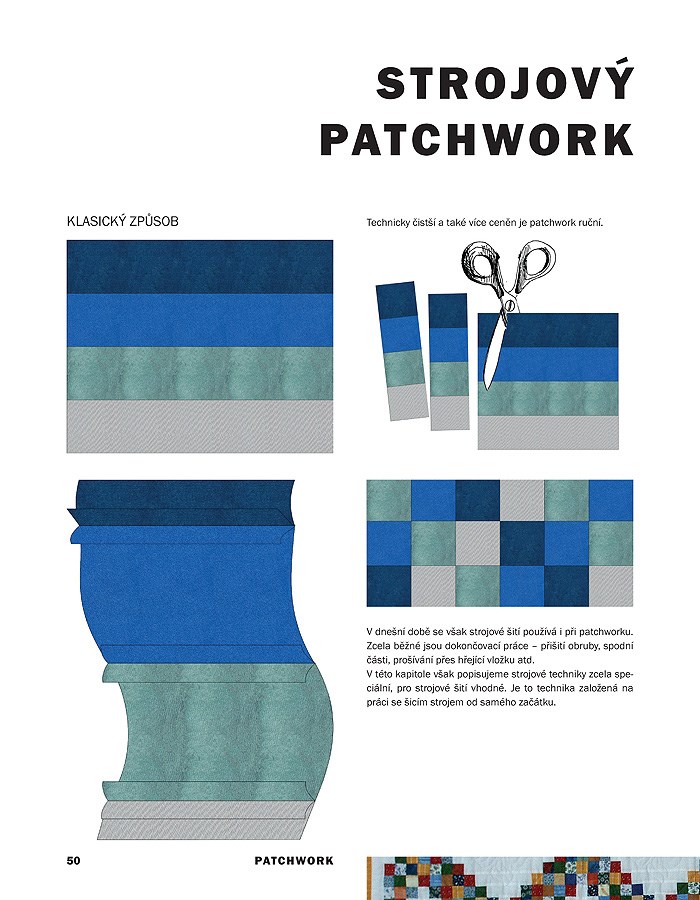 Základní princip této prastaré techniky spočívá ve skládání a sešívání různobarevných látkových dílů v plochu tak, aby vznikl vzor, který připomíná mozaiku. Pojem quilt pak označuje štěpovanou přikrývku. Společně s autorkami projdete historií, seznámíte se s pomůckami i používanými materiály, s různými způsoby zpracování, ručním i strojovým šitím a obohatíte své znalosti o jednotlivé druhy patchworku. Kniha obsahuje řadu přehledně zpracovaných vzorů a návodů k výrobě mnoha krásných dek, tašek či polštářů. Nechybí ani inspirace na využití patchworku v oděvu, interiéru i různých praktických doplňcích.