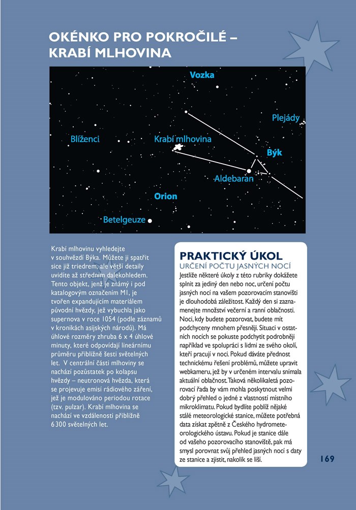 Nepostradatelná příručka pro začínající astronomy je rozdělena do dvanácti kapitol podle měsíců v roce, v nichž jsou kromě popisů hvězdné oblohy v daném období vysvětleny také základní astronomické pojmy. Seznamování s objekty a souhvězdími na noční obloze vám zpříjemní CD, díky němuž nebudete muset luštit písmenka v knize s baterkou, ale postačí jen zaklonit hlavu a nechat se vést nahrávkou. Pro pokročilé nechybí v knize okénko, které je věnováno pozorování s triedrem nebo astronomickým dalekohledem. Navíc v knize naleznete ještě jednu praktickou pomůcku – otočnou mapu hvězdné oblohy.