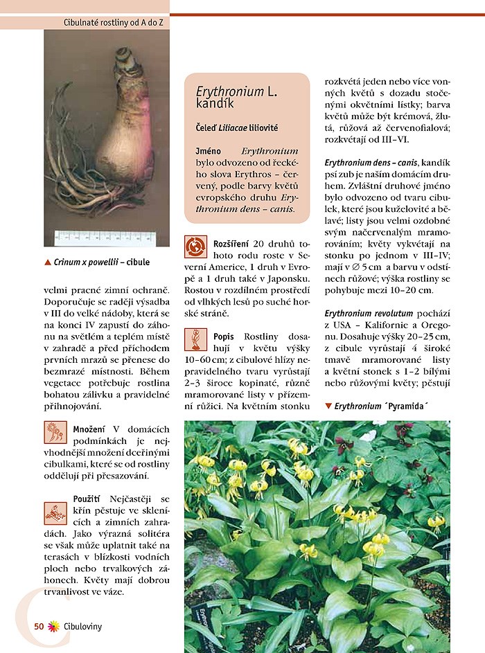 Tato kniha – přesně šitá na míru našim klimatickým podmínkám – vám představí pestrou paletu cibulnatých okrasných rostlin našich zahrad, seznámí vás s jejich původem i pěstováním, nahlédne dokonce také do historie jejich použití v kultuře.