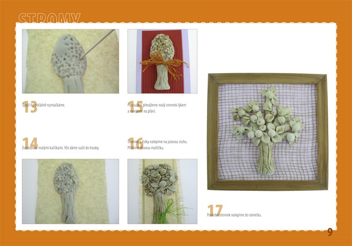 Vyzkoušejte si tvorbu z dostupného materiálu, který pořídíte opravdu za pár korun. Stačí trochu mouky, oleje, voda, sůl a můžete začít. Pomocí fotografických návodů vám autorka nabídne 16 nápadů, v nichž si zhotovíte zajímavé dekorace, ale i praktické předměty jako například stojánek na fotografii, svícen či věšáček. Těsto pak jednoduše zapečete v troubě a na závěr jej můžete namořit, namalovat akrylovými barvami či pouze natřít bezbarvým lakem, aby výrobek déle vydržel.