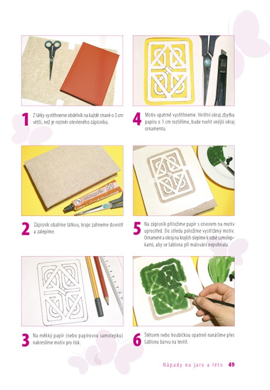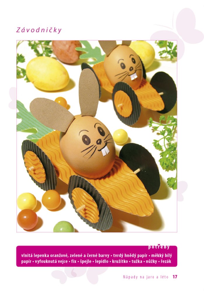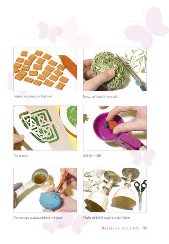 Nechte se inspirovat nápady na jarní a letní tvoření! V této knížce najdete množství zajímavých nápadů na tvorbu nejrůznějších výrobků a dárečků, užitečných i méně užitečných maličkostí pro radost a zábavu. Výrobky jsou rozděleny na jarní a letní období. Jarní část je věnována hlavně velikonočním svátkům, zdobení vajec různými technikami, barvení přírodními materiály, nechybí košíčky a krabičky na vajíčka, kuřátka, slepičky, zajíčci, zkrátka všechno, co k jaru a velikonocům patří. V letní části najdete výrobky z přírodních materiálů, např. letní věneček s jahůdkami, vytvoříte si pískový obrázek, originální šperk k letním šatům, prázdninový deník či čínskou větrohru na zahradu. Použité techniky výroby jsou tentokrát velmi různorodé. Dozvíte se, jak malovat sklo a keramiku, jak se dělá mozaika, odlévá mýdlo, tiskne na textil pomocí šablony, jak si vytvořit papírové výrobky pomocí forem. Naleznete zde podrobné návody na výrobu z přírodních materiálů, drátů, lepenky, papíru, modelovací hmoty, skla a mnoho dalšího.