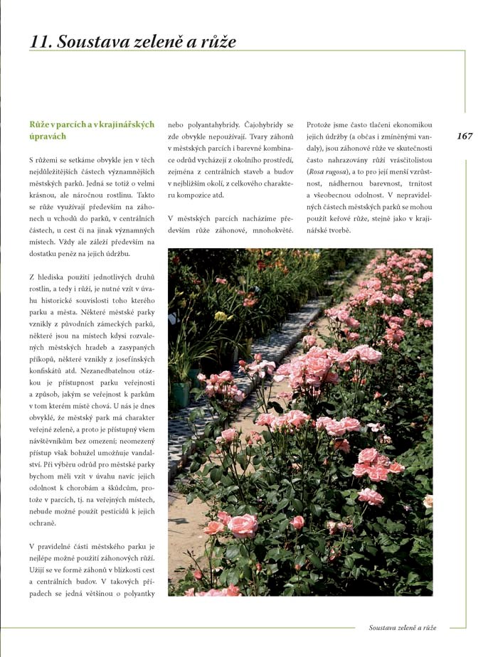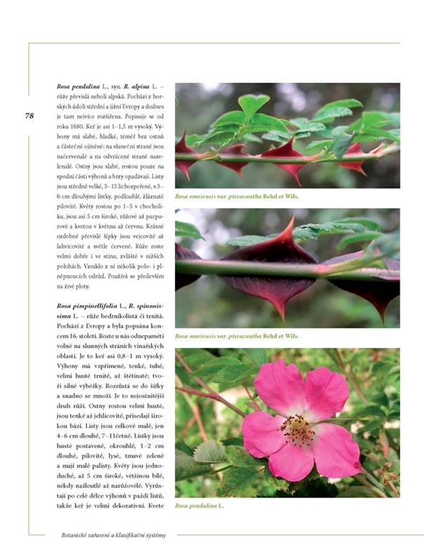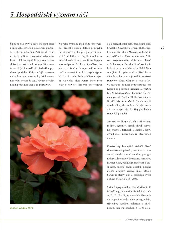 Převážná část knihy se pak samozřejmě věnuje botanické charakteristice růží. Mimo jiné získáte informace o:
