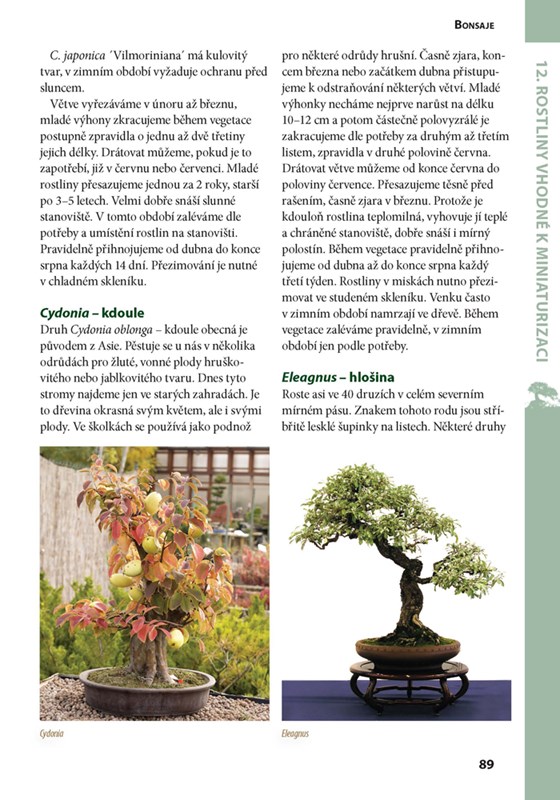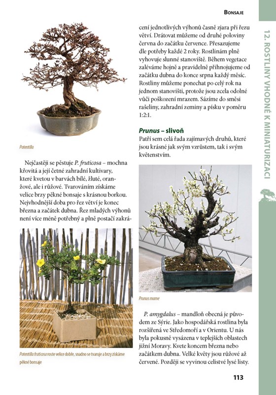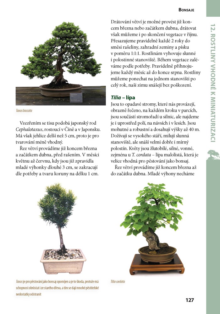 - rozsáhlou obrazovou část shrnující nejvhodnější druhy dřevin vhodných k miniaturizaci