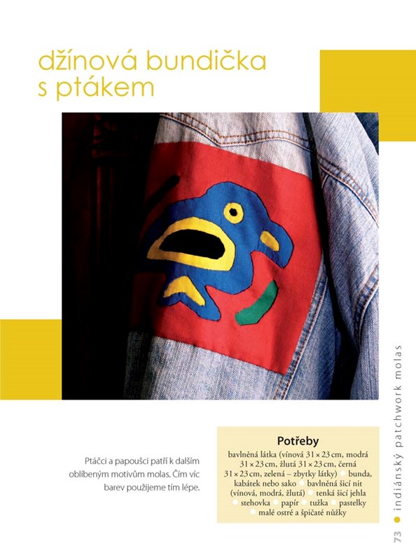 Pokud jste si oblíbili patchwork a rádi byste vyzkoušeli i další obdobné, ale zatím méně známé textilní výtvarné techniky, je tato kniha určena právě pro vás. Představí vám specifický druh tradiční indiánské textilní aplikace zvané molas, jejíž podstata spočívá se vrstvení, našívání a následném prostřihávání jednobarevných látek. Výsledkem jsou pak originální pestrobarevné textilní obrazce s geometrickými, rostlinnými nebo figurálními motivy, kterými lze vyzdobit jakoukoliv část oděvu nebo bytového textilu. Autorka vás nejdříve seznámí s historií molas, jejím původem a specifiky. Poté se dozvíte, jaký druh látek a dalších pomůcek budete k tvorbě potřebovat, a seznámíte se s jednoduchými způsoby našívání. Díky barevným fotografiím a názorným postupům pak už bude zhotovení některého z uváděných 17 projektů hračkou i pro úplné začátečníky v oblasti indiánského textilního umění.