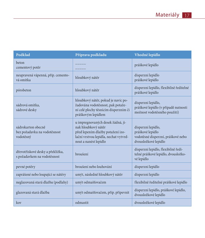 - Vhodná lepidla a materiály na spárování
