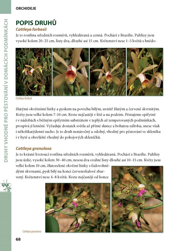 „Obrazová část obsahuje více než 750 plnobarevných fotografií a podává ucelený přehled o nejčastěji pěstovaných druzích. Tyto orchideje je možné pěstovat v domácích, amatérských podmínkách a péči o ně zvládnou i začátečníci či mírně pokročilí. Na závěr této části uvádí autor i některé méně známé druhy, vhodné spíše pro pokročilejší pěstitele.“