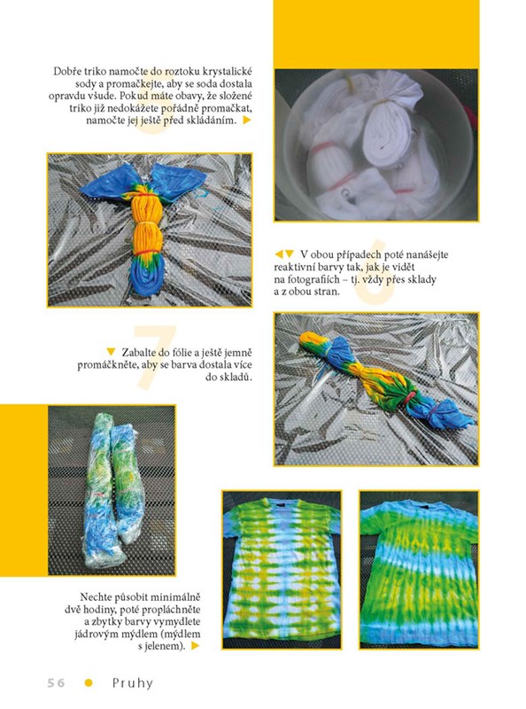 Zkušená autorka představuje v jednotlivých projektech klasické i nejmodernější techniky dekorace textilu – od bělení, nanášení přes šablony a razítkování, až po práci s reaktivními batikovacími barvami či batiku rzí. V knize se dozvíte, jaké pomůcky a materiály budete potřebovat, ukáže vám, jak nejlépe zvládnout jednotlivé textilní techniky, a srozumitelným způsobem krok za krokem představí jednotlivé projekty.