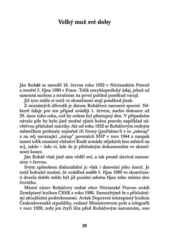 Autorem knihy Ján Roháč – Život, styl a dílo jedinečného režiséra je navíc jeden z jeho dlouholetých nejbližších spolupracovníků. Už touto svou autenticitou není tedy tato publikace jen dalším z řady titulů specifi cké memoárové literatury, ale především hodnověrným a pozoruhodným literárním dokumentem, jenž jistě bude navýsost cenný pro ty, kteří se vážně zajímají o podstatu a pozadí československého populárního kumštu v tom nejlepším smyslu toho slova.