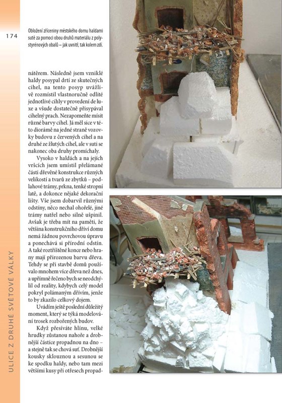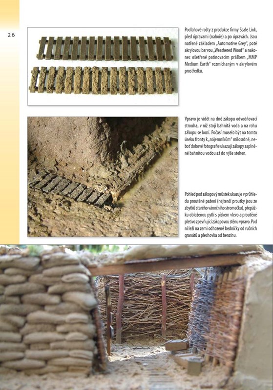 Hlavní diorámy vytvořené pro tuto knihu, jejichž stavba je popsána a ilustrována krok za krokem, představují zákopovou scénu z první světové války, dřevěný středověký hrad s podhradím v malém měřítku, úžasnou lesní paseku, klid a barevnost dokonale přesvědčivé obezděné zahrady, jež je doplněna rostlinami, stromy a skleníkem, a chaos bombardováním zničené ulice za druhé světové války.