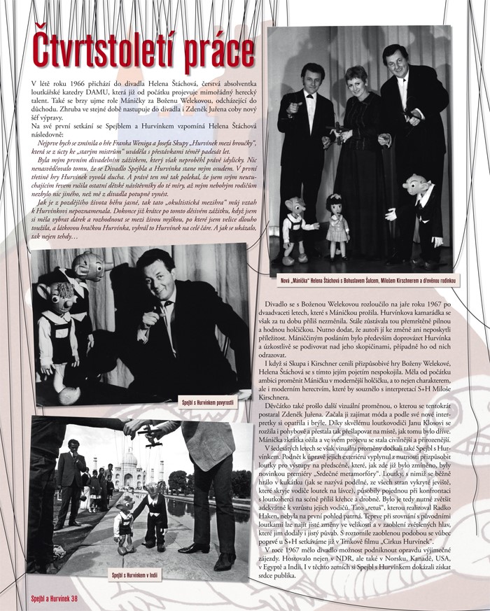 Čtenáře jistě potěší i audio-vizuální přílohy publikace. Ojedinělé CD „To nejlepší se Spejblem a Hurvínkem“ vzniklo ve spolupráci s vydavatelstvím Supraphon a nabízí posluchačům možnost naslouchat Spejblovi a Hurvínkovi v podání prof. Josefa Skupy, Miloše Kirschnera a Martina Kláska. Je tomu totiž také neuvěřitelných osmdesát let, kdy byly pořízeny první nahrávky se Spejblem a Hurvínkem. Denisa Kirschnerová (1974)