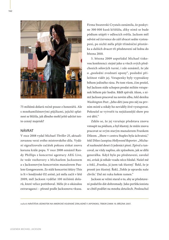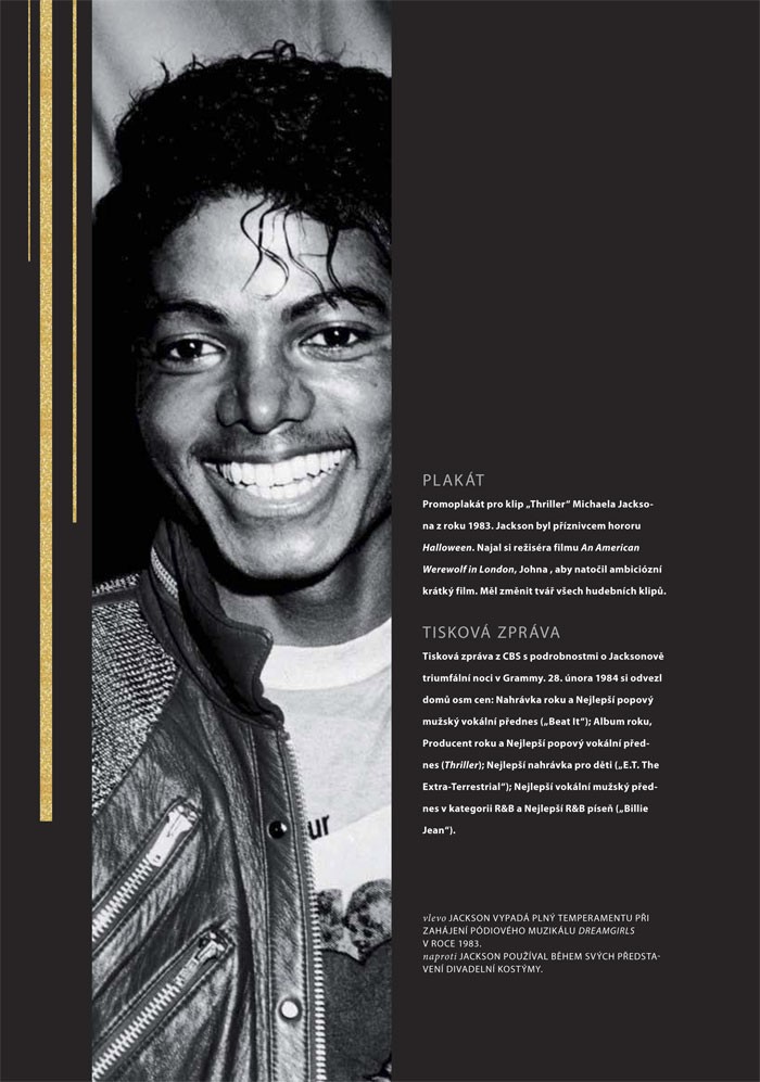 Michael Jackson je osobnost, která nesmazatelným způsobem zasáhla do dalšího vývoje hudby. Kniha Legenda Michael Jackson přináší podmanivý příběh tohoto člověka a umělce protkaný unikátními fotografiemi a předměty, které dokreslují jeho fascinující, složitý život. Díky své koncepci, jako Muzeum v knize, přináší publikace spoustu vzácných vyjímatelných předmětů. Můžete tak vzít do vlastních rukou například: