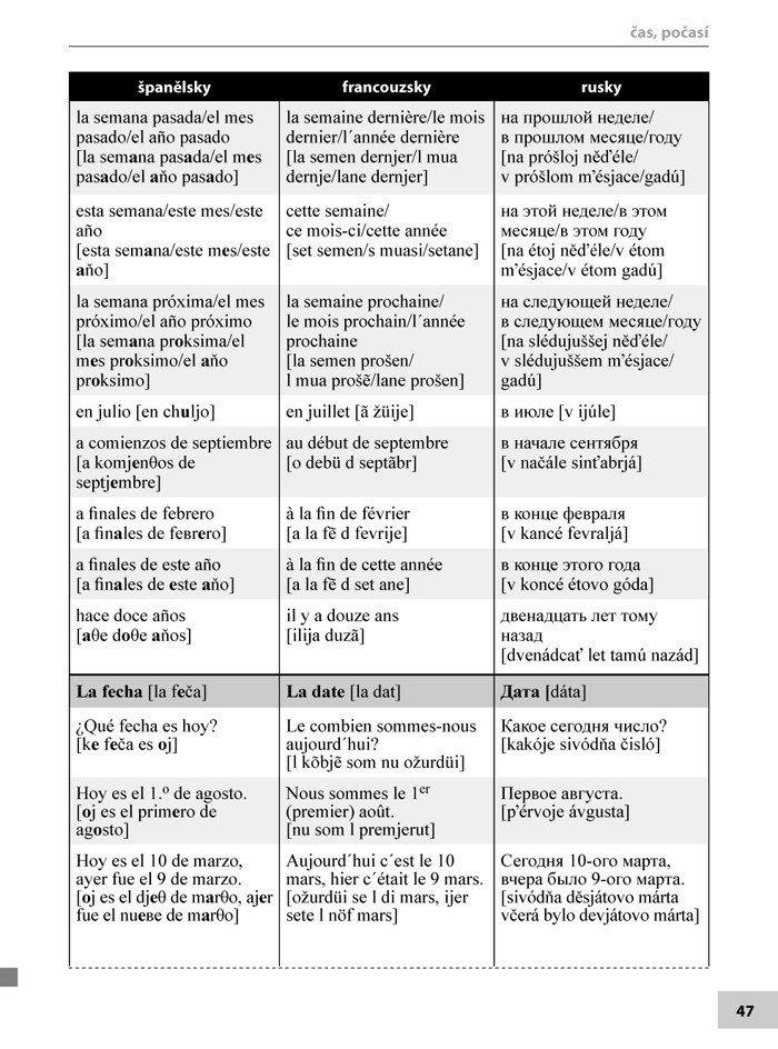 Všechny fráze jsou uvedeny v pěti světových jazycích: angličtině, španělštině, francouzštině, němčině a ruštině. Kromě toho každá kapitola obsahuje rady a tipy, na co nezapomenout, jaká pravidla dodržovat, případně kde hledat zajímavé kontakty a odkazy.