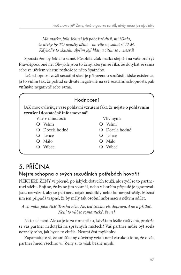 - Pět typů orgasmických potíží a dvacet pět příčin těchto potíží.