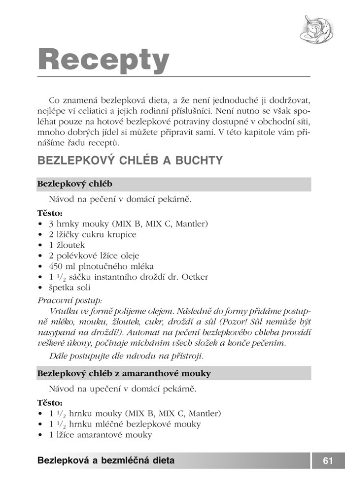 Odpovědi na nejčastější otázky, seznam E (přídatných látek v potravinách), legislativa v ČR a na Slovensku týkající se občanů s bezlepkovou dietou, velké množství nových zajímavých receptů na bezlepkové pečivo, zákusky a cukroví. To vše naleznete v této příručce.