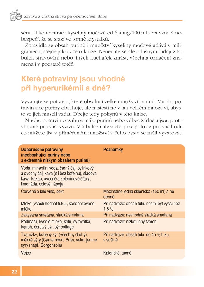 Chcete i při přísné dietě nacházet potěšení z jídla? Pokud máte vy nebo někdo z vašich blízkých zvýšenou hladinu kyseliny močové v krvi nebo dokonce dnu a musíte se značně omezovat v jídle, díky naší knize naleznete opět radost ze života. Kromě pochopení příčin této velmi rozšířené nemoci a praktických rad, jak s ní lépe žít, zjistíte, že i dietní strava může velmi dobře chutnat. V knize naleznete: