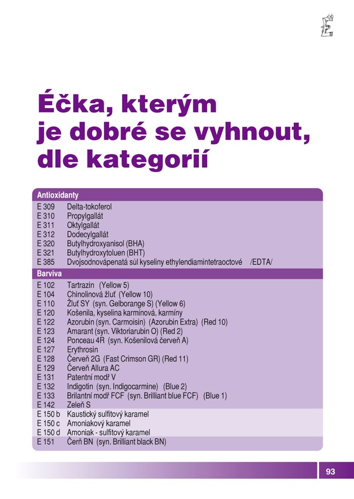 - Přílohu, kterou si můžete brát s sebou na nákupy – seznam nevhodných Éček seřazený dle jejich číselných kódů.