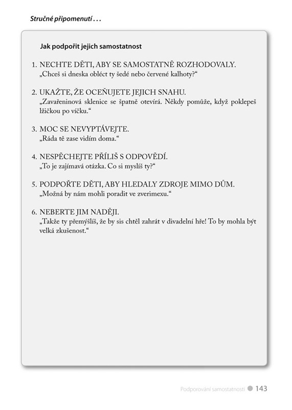 - Cvičení, ve kterých si uvědomíte chyby, jichž se případně dopouštíte při jednání s dítětem.