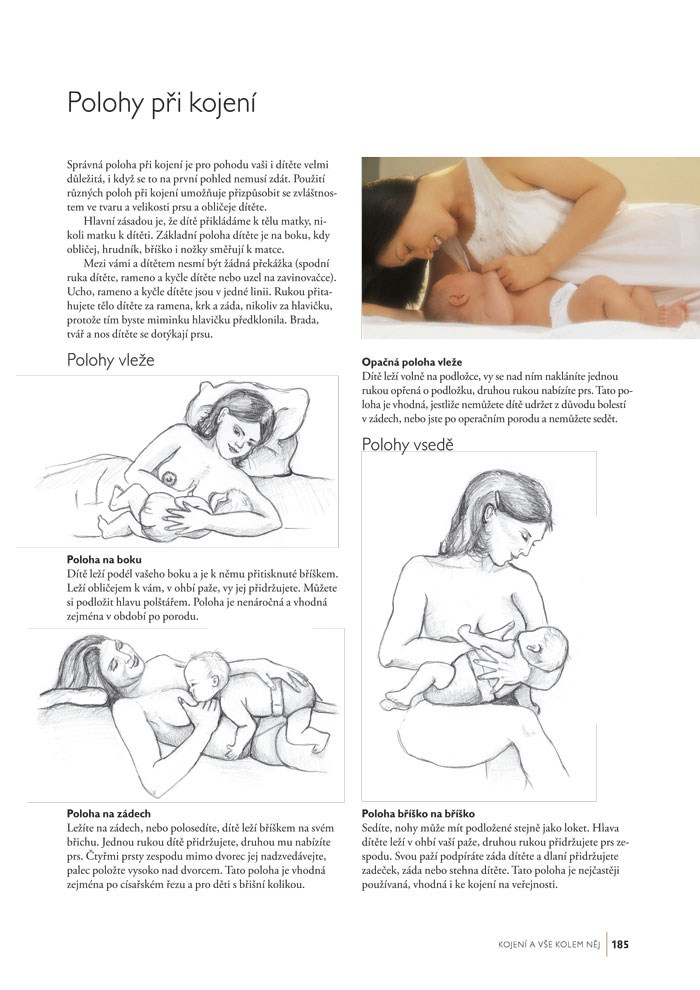 - Péče o novorozence v porodnici, a následně doma. Kompletní rady, jak o dítě pečovat, jak ho krmit, oblékat, ošetřovat, koupat, uspávat, zda a kdy používat dudlík, vše potřebné o kojení, jak dítě správně držet.