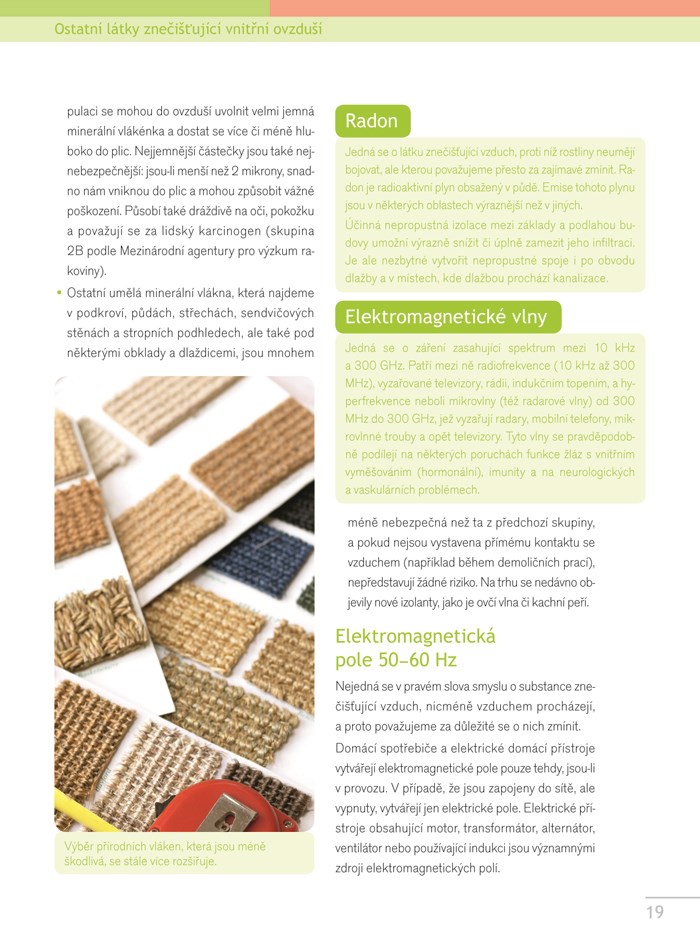 - přehled látek, které znečišťují ovzduší v našich domovech, kde se vyskytují, čím škodí našemu zdraví a jak je eliminovat vhodnými rostlinami,