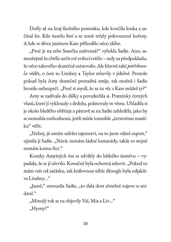 Sadie je tu nová a jediné, co si přeje, je zapadnout mezi ostatní a vyhnout se průšvihům. Když vyjde najevo, že se v ní ukrývá to nejdivočejší zvířecí světlo ze všech, dostane pozvání přidat se do party dívek, které si říkají Smečka. V jejím čele stojí Lindsey, královna školní džungle. Netrvá dlouho a Sadie je nucena čelit vskutku dramatickým událostem, a ještě se vypořádat s city, které tajně chová vůči jistému klukovi ze soukromé chlapecké školy.