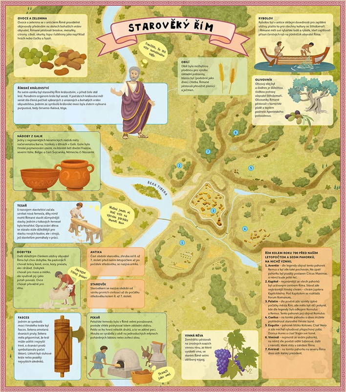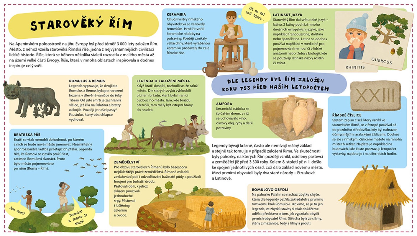Všechny cesty vedou do Říma, praví známe rčení, které obrazně vyjadřuje, jak důležitá civilizace vznikla před téměř 3000 lety. Když byly položeny základy starověkého města Řím, nikdo netušil, že zároveň vznikla jedna z nedůležitějších říší lidské historie. Říše, která se v dobách své největší slávy rozprostírala na území velké části Evropy, části Británie, kolem celého Středozemního moře a v zemích u Černého moře. Římská říše inspirovala celý svět, obzvláště v oblasti umění, architektury, jazyka, politiky a obchodu, ale i vojenství. Pojď se spolu s námi zábavnou formou seznámit s Římem a s jednou z nejzajímavějších civilizací starověku.